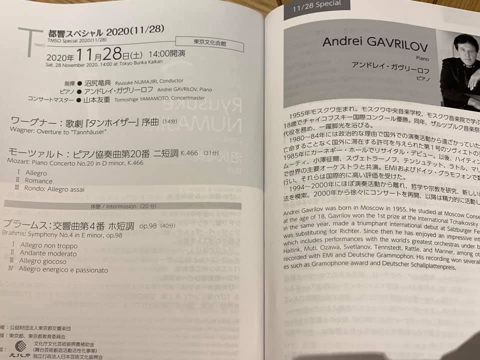 の指揮で、ワーグナー タンホイザー序曲、モーツァルト ピアノ協奏曲第20番.ブラームス 交響曲第4番のプログラムで、ソリストはアンドレイ ガブリロフさんでした![]()